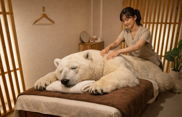 仕事で、育児で、勉強で、スポーツで、体は毎日頑張って、頑張っただけ疲れをためこんで… たまには心も体も「ぐて~~~~~」っと力を抜いてリラックスしませんか? そう、昼寝しているシロクマのように
