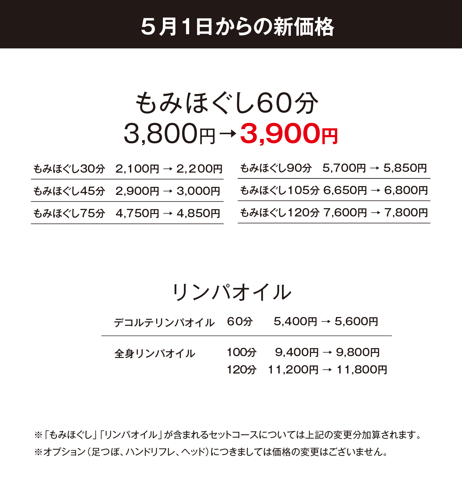 日頃より、シロクマの昼寝をご利用、くださいましてありがとうございます。この度、施術の質やお店の環境を維持していくため、さまざまなコストの上昇もあり、料金の見直しをさせていただくこととなりました。誠に勝手ではございますが、5月1日より価格改定させていただきます。何卒ご理解のほどよろしくお願い申し上げます。
